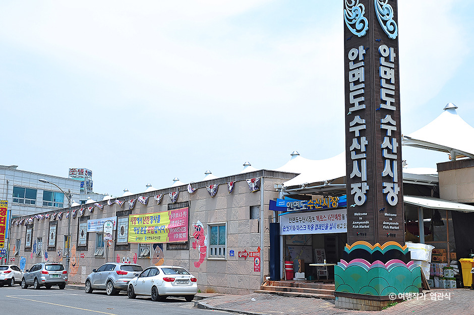 안면도 버스터미널 근처에 있는 안면도 수산시장은 오랜 전통을 간직하고 있는 재래시장인 안면도 5일장을 시장현대화사업에 맞춰 2005년 새롭게 오픈한 곳이다. 버스터미널 옆이라는 위치상 버스를 이용하는 태안 펜션 여행자들이 이곳에서 회를 뜨거나 바비큐용 대하나 조개류를 구입하기도 편하고 다시 돌아갈 때 수산물 쇼핑을 하기 좋다. 수산시장치고는 규모가 그리 큰 편은 아니고 주로 주말 장사 위주로 하므로 평일에 가면 문이 닫힌 곳이 많다. 수산물시장 안으로 들어서면 양 옆으로 늘어선 횟집들 한가운데에 즉석 회를 떠서 앉아 먹을 수 있는 테이블이 놓여 있다. 주로 안면도에서 많이 나는 대하, 꽃게, 우럭을 중심으로 생선회, 낙지탕, 꽃게탕, 게국지 등을 주메뉴로 하는 횟집들로 구성되어 있다. 그뿐만 아니라 새우튀김과 꽃게 튀김 등 다양한 해산물 튀김도 저렴하게 판매하고 있어 태안 여행 중 간단하게 식사를 해결하기에도 좋다. 수산시장 내 모든 상가는 가격표시제에 따른 가격을 제시하기 때문에 바가지 쓸 염려 없이 합리적으로 해산물을 살 수 있어 더 싼 집을 찾느라 돌아다니지 않아도 된다.