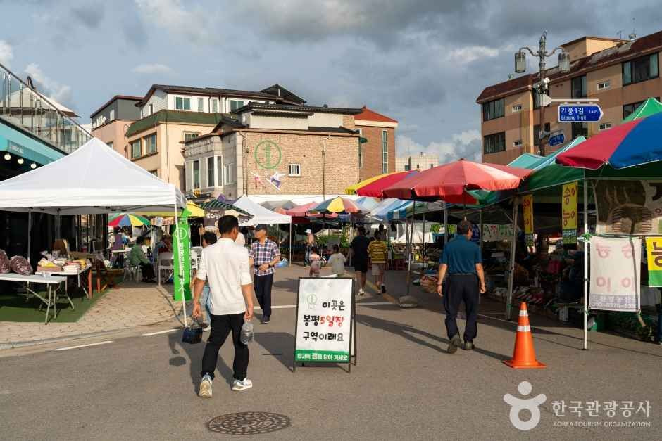 강원도 평창군의 봉평이라는 마을에서 열리는 오일장이다. 오일장은 5일마다 열리는 전통 시장을 말한다. 시장마다 장날이 다른데, 봉평장은 끝자리가 2, 7인 날에 장이 선다. 장날이 되면 100여 개 점포는 손님들과 여행객들로 북적인다. 전국의 수많은 오일장 중 봉평오일장이 유명한 이유는 이곳이 이효석의 소설 <메밀꽃 필 무렵> 속 배경이기 때문이다. 한국 교과서에도 실린 이 소설은 전국의 장을 떠돌며 물건을 파는 장사꾼이 사랑의 장소인 봉평장을 잊지 못해 매번 찾아온다는 내용을 바탕으로 한다. 봉평오일장에서는 농수산물, 먹거리, 의류, 잡화 등 다양한 품목을 구경할 수 있다. 시장 구경의 하이라이트는 메밀 음식을 먹어보는 것이다. 강원도 산골 마을, 봉평에서 메밀은 밀을 대신하는 먹거리였기에 다양한 메밀 요리가 발달했다. 시장에서 메밀국수, 메밀 전, 메밀 닭강정, 메밀 찐빵과 만두 등 메밀을 활용한 음식이 눈에 띄는 이유다.