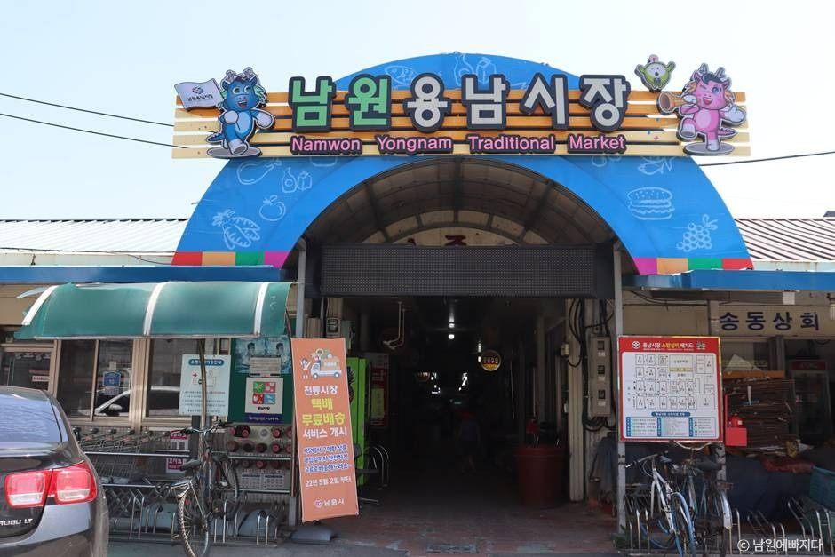 남원 용남시장은 1970년대 초까지 남원을 대표하던 시장으로, 한때 남원 미나리 재배지로도 유명했다. 춘향골시장과 광한루원과 가까워 주변 관광지와 함께 둘러보기 좋은 위치에 있다. 시장 점포의 70%가 임대점포로 수산물, 곡물, 음식점 등을 중심으로 운영되고 있으며, 식품 구입이 편리하도록 알차게 구성되어 있다. 시장 전용 주차장이 마련되어 접근성이 뛰어나고, 화장실과 야외 쉼터도 이용할 수 있다. 골목형성시장 육성 사업을 통해 특화 환경과 디자인을 조성하여 복합문화공간으로 자리 잡았으며, 내부 쉼터에는 도서와 사무용품, 음식 섭취 공간이 마련되어 젊은 세대도 편리하게 이용할 수 있다.