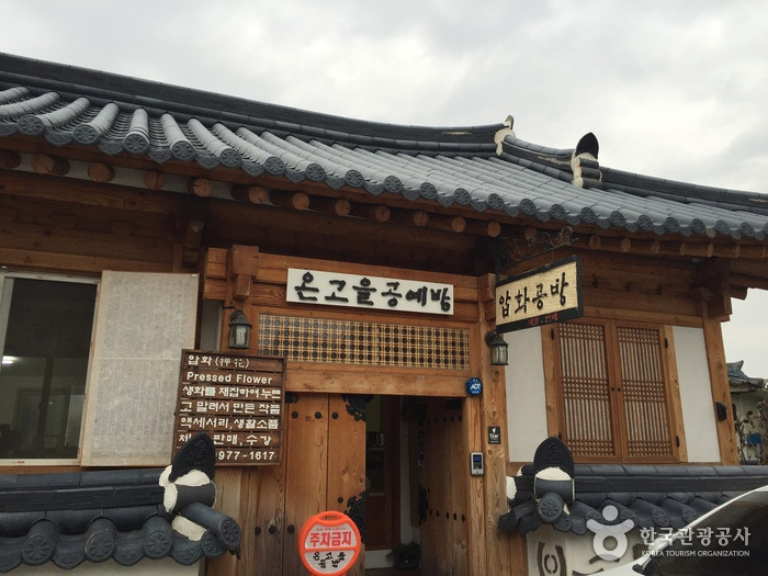 온고을 공예방은 전주 한옥마을에 있는 압화(꽃 누르미)를 전문적으로 취급하는 공방이다. 자연의 아름다움 중에서 으뜸이라고 할 수 있는 꽃은 그 찬란함에 비해 계절적이고 순간적인 생명체이지만 물리적인 방법이나 약품 처리를 하는 등의 인공적인 기술로 누름 건조한 후 회화적인 느낌을 강조하여 구성한 것을 압화(pressed flower)라고 한다. 그래서 압화는 꽃을 평면으로 말리기 때문에 조형성이 적은 반면, 다양한 매력을 갖고 있기 때문에 압화로 된 한 송이 작은 들꽃은 카드, 편지지, 액세서리, 액자용 그림, 전등갓 등 다양한 생활용품과 어울려 훌륭한 장식품이 될 수 있다.