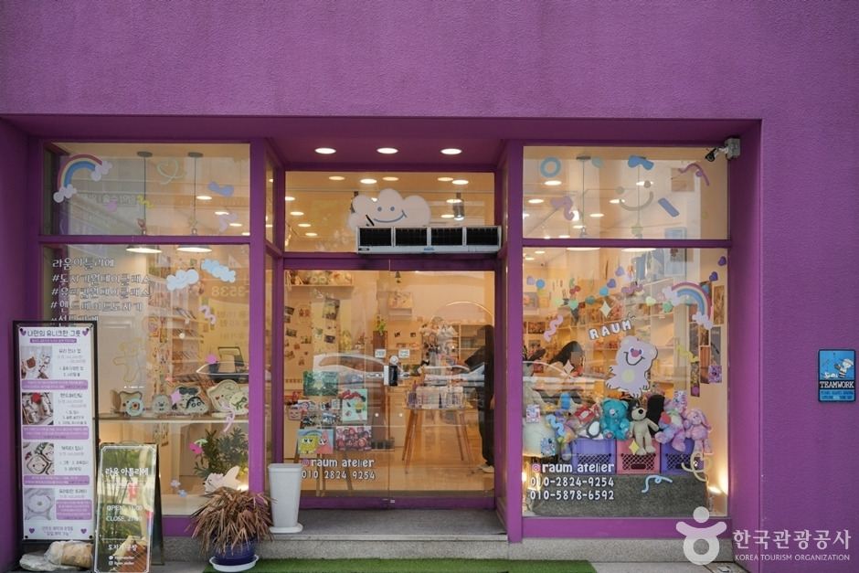 라움아틀리에는 머그컵, 캐릭터도자기, 캐릭터 냄비받침, 유러피안 트레이 등 다양한 도자기를 만들어 볼 수 있는 도자기공방이다. 나만의 유니크한 그릇 만들기 등 작품을 만들면, 나머지 후속 작업인 가마에서 굽는 과정은 공방에서 처리하고 약 4주가 지나서 수령하게 된다. 유리전사와 핸드페인팅의 체험을 할 수 있고 원데이클래스도 운영하며 새로운 공간에서 도자기만들기 이색 체험을 할 수 있는 장소이다. 체험을 같이하여 유대감 형성에 도움을 주고자 하는 부모님과 자녀, 혹은 연인 등의 방문이 많다.