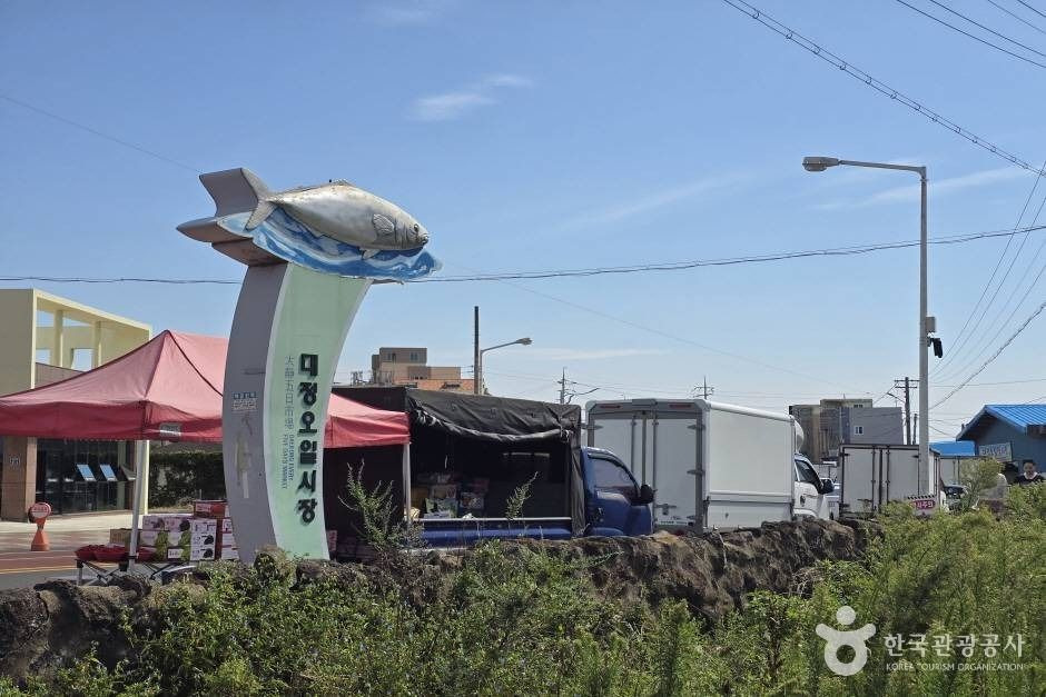 대정오일시장은 6·25전쟁 당시 문을 연 곳으로 제주도 서부 지역에서 가장 큰 오일시장이다. 모슬포에 자리 잡고 있어 모슬포 오일장이라고도 불리며 당시 대정읍에는 비행장과 육군훈련소가 있어 필요한 생활용품 및 물자가 오가다 보니 점차 커지게 되었고 자연스레 시장이 형성되었다고 한다. 대정읍 내에서 자리를 몇 번 옮기며 지금은 현재의 자리인 대정읍 하모리에 자리를 잡았다. 큰 규모만큼이나 선원들이 필요한 물품 등 취급하지 않는 상품이 없고 다양한 먹거리까지 준비되어 있으니 출출한 배를 달래려 방문해 보는 것도 나쁘지 않다. 대정 오일장은 매월 1일, 6일에 장이 열린다. 다만, 31일이 있는 달에는 31일에 문을 열고 다음 날 1일에는 열리지 않으니 참고하는 것이 좋다.