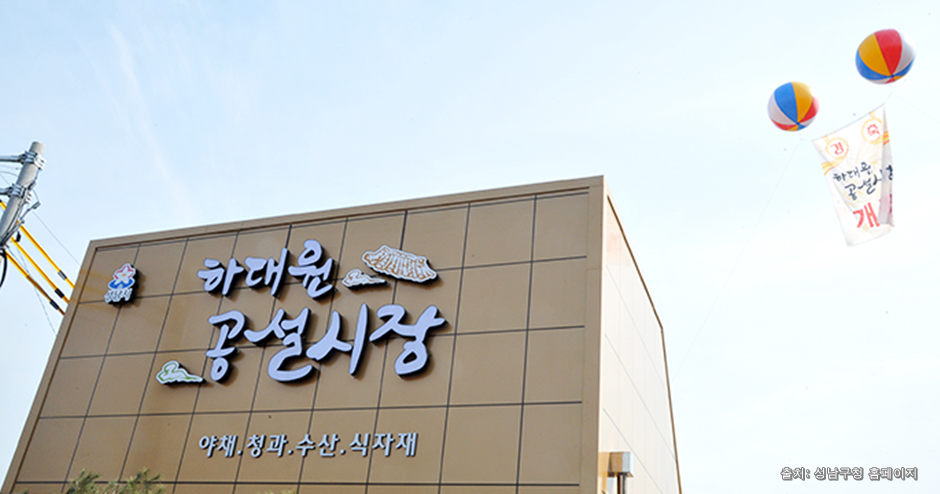 경기 동남부를 아우르는 성남 대표 도매시장으로, 성남시 중원구 마지로에 있다. 70개 점포가 있는 단층 가설 건축물(7개 동)과 건너편 23개 점포를 하나로 묶어 1991년 11월 개장했다. 각 점포는 새벽 5시부터 대형 탑차로 싣고 들어오는 채소, 청과, 수산물, 식자재 등의 품목을 관공서, 복지관, 슈퍼마켓 등에 도매가로 판매한다. 시장을 찾는 개인 고객에게도 저렴한 가격에 각 품목을 판매한다. 성남시는 하대원 도매시장이 생긴 지 26년째이던 지난 2017년 노후한 단층 가설 건물을 철거하고, 그 자리에 2층짜리 건물 2개 동을 새로 지어 현대식 시설의 공설시장으로 재탄생시켰다.