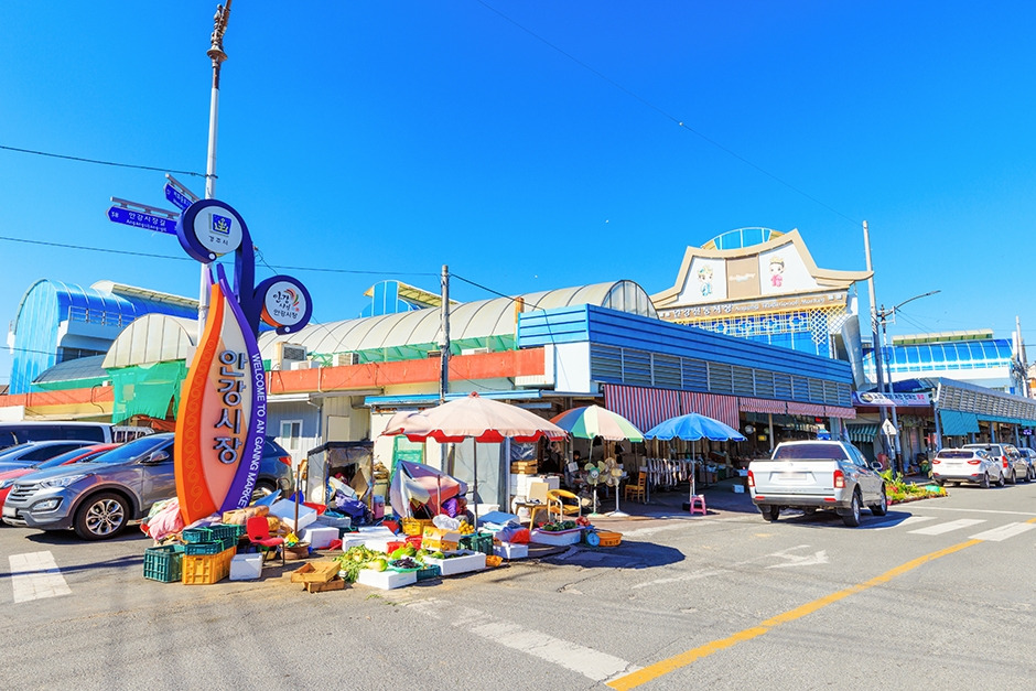 안강시장은 경성북도 경주시 안강읍 양월리에 있다. 1923년 개설된 상가 건물형 중형 시장이며, 장날은 매월 4일, 9일이다. 오일장이 열리는 날이면 안강 참단감, 고추, 참깨, 마늘, 배추 등 안강과 그 주변에서 생산된 신선하고 청결한 갖가지 농산물 등을 만날 수 있다. 무엇보다 싱싱한 어패류, 젓갈류, 생선류를 구입할 수 있으며, 가격까지 착하다. 강동IC에서 가깝고, 주변에 세계문화유산 경주양동마을과 사적 제154호 옥산서원이 있어 식전이나 식후에 방문하기 수월하다.