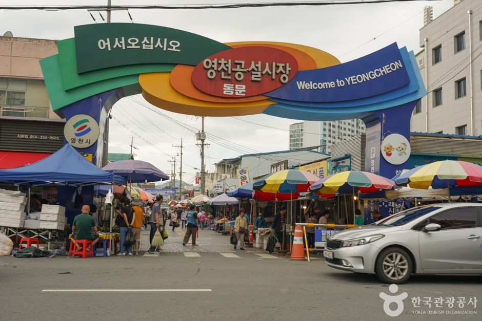 영천장은 매달 2일, 7일에 열리는 오일장으로, 원래는 읍장으로 불리어 오다가 일제 강점기 영천장으로 이름을 바꾸었다. 1955년 영천시 완산동 현재의 자리로 옮겼으며, 2005년 시설 현대화 사업을 완료했다. 현재는 상설시장과 정기시장을 겸하고 있으며, 주변지역에서 생산되는 농산물, 곡물류와 함께 돔배기, 한약재 등 전국적으로 명성이 높은 특산품을 거래하는 경상도 최대 농산물 교역 시장으로 손꼽힌다. 특히, 영천장의 경우 영동교 남쪽 둔치에 마련된 부지에서 화물차 소유 상인들을 중심으로 농산물이 거래되고 있다.
