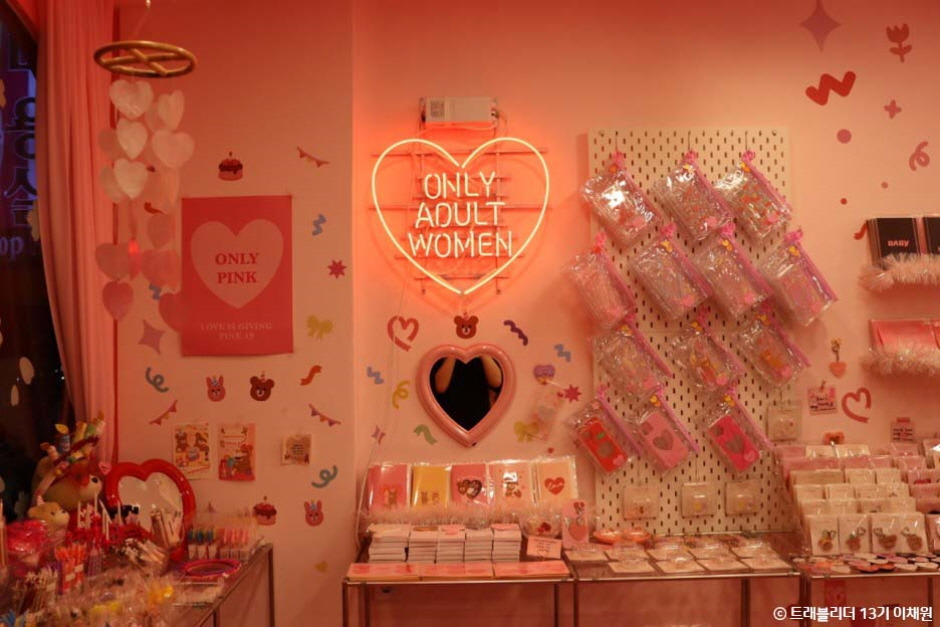 부산 광안리에 있는 소품샵이다. 광안리에 3군데의 매장이 있는데 가장 크고 최근에 생긴 3호점이다. 이 곳은 광안역에서 해수욕장 오는 길에 있다. 매장 전체가 핑크빛이 도는 곳이라 찾기 쉽다. 다양한 인테리어 소품들을 판매하고 있으며, 마스크스트랩, 배지, 수첩, 카드, 그립톡, 방향제, 액세서리 등 종류가 다양하다. 가게 이름처럼 핑크 관련 아이템들이 많다.