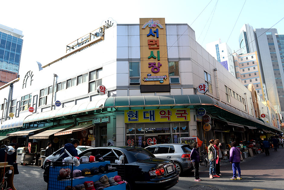 1960년대 초 상인들이 부산시에 보증금을 내고 임시 건물을 지어 장사를 한 것이 서면 시장의 시작이다. 번화가 한가운데서 60년 넘게 전통시장으로 자리 잡고 있는 이곳은 맛집으로 소문난 칼국수, 돼지국밥, 옛날 통닭 등 원조 터줏대감의 가게들과 요즘 시대에 맞게 준비된 트렌디한 가게들이 공존한다. 전통의 맛과 요즘 시대에 맞게 트렌디한 메뉴를 함께 맛볼 수 있다. 가까운 지하철역은 서면역, 부암역, 전포역이 있어 접근성이 편리하다. 주변 명소로는 황령산 전망 쉼터, 조선 통신사 역사관, 국립부산국악원, 삼광사, 이중섭 문화거리, 부산 커피박물관 등이 있다.