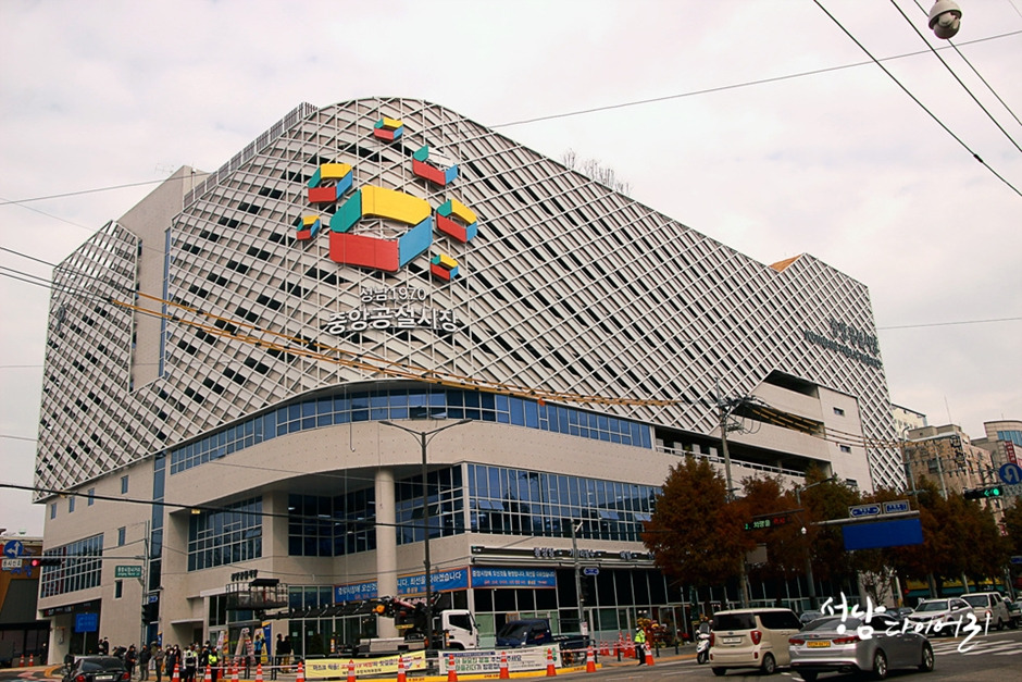 성남중앙시장은 성남시가 출범하기 전인 1970년 경에 자연발생한 전통시장이다. 원래는 2개의 재래시장이 붙어 있던 곳인데 두 차례에 걸쳐 화재가 발생하는 아픔을 겪은 후 전통시장 현대화 사업을 통해 3천519.4㎡에 지하 1층~지상 7층 규모의 현대식 건물로 탄생했다. 점포와 냉장·냉동창고, 주차장, 각종 편의시설 등 복합 기능을 갖췄으며 특히 3층에서 8층까지 주차 공간을 확보해 혼잡하지 않다. 1층에는 야채, 정육, 반찬, 건어물, 분식, 식당, 인테리어 상가가 있고, 2층은 식당, 음료, 잡화, 속옷, 액세서리, 인테리어 상가가 있다. 대형마트처럼 시장도 깨끗하고 체계적인 관리가 필요하다는 걸 앞장서 보여준 공간이다.
