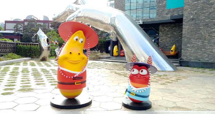 시민 휴식 공간으로 대형조형물, 라바 수문장 조형물, 육각 블록 투바앤 뜰 상시 개방